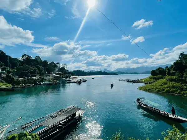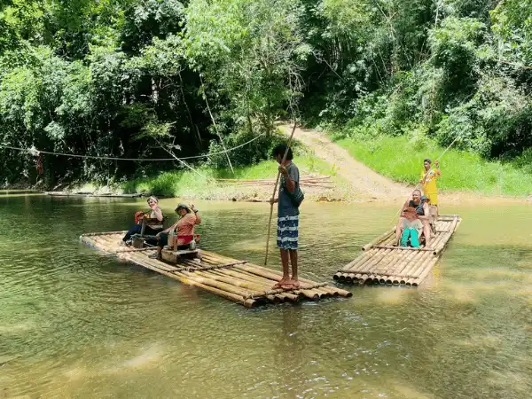 * Doing Bamboo rafting and enjoy a coffee with Bamboo cup in to Khaosok River